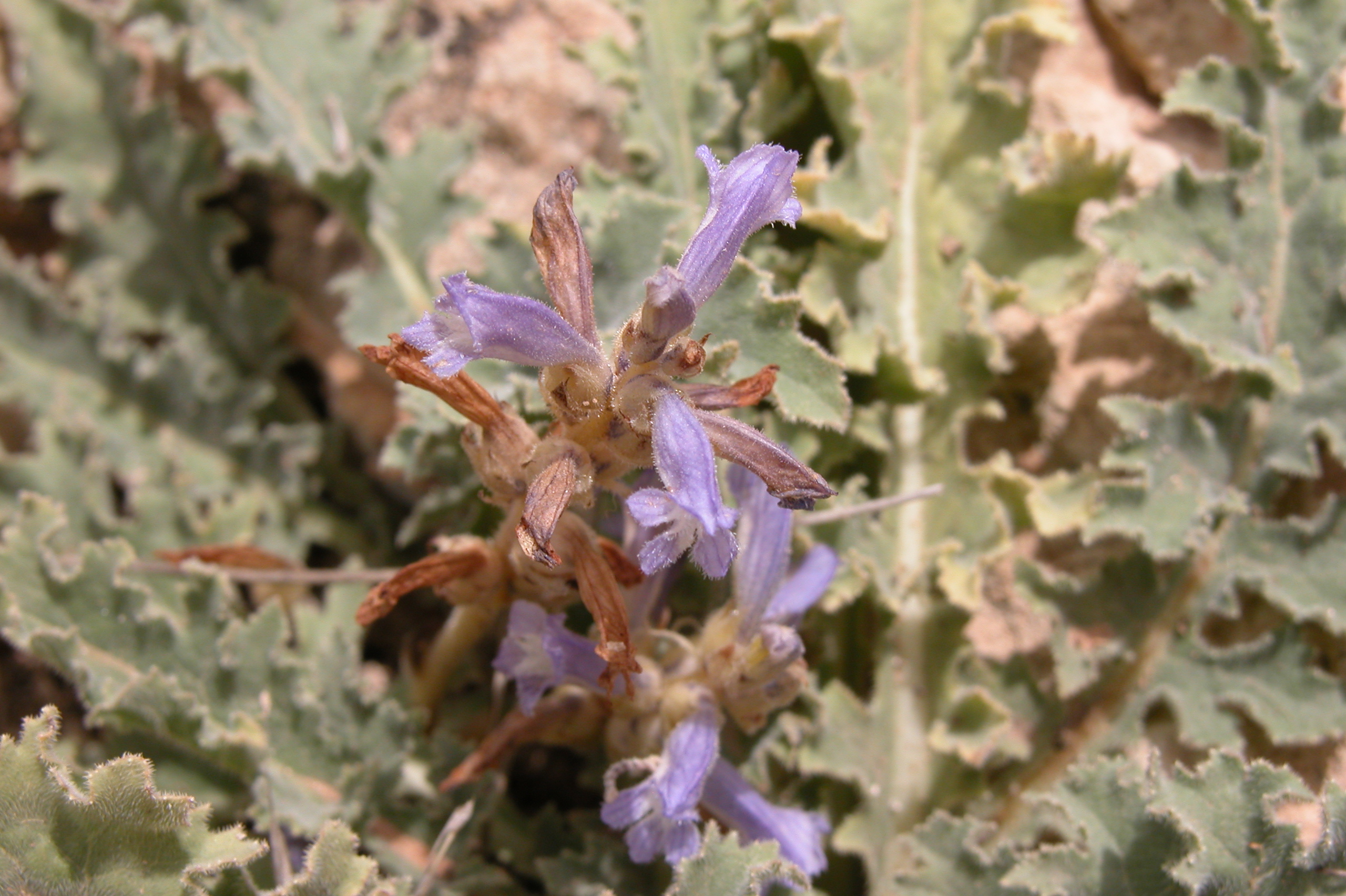 Comments: Orobanche ramosa apparently parasitizing M. nuda. Jebel Abdel Aziz, northern Mesopotamia, Syria. 7 May 2006.