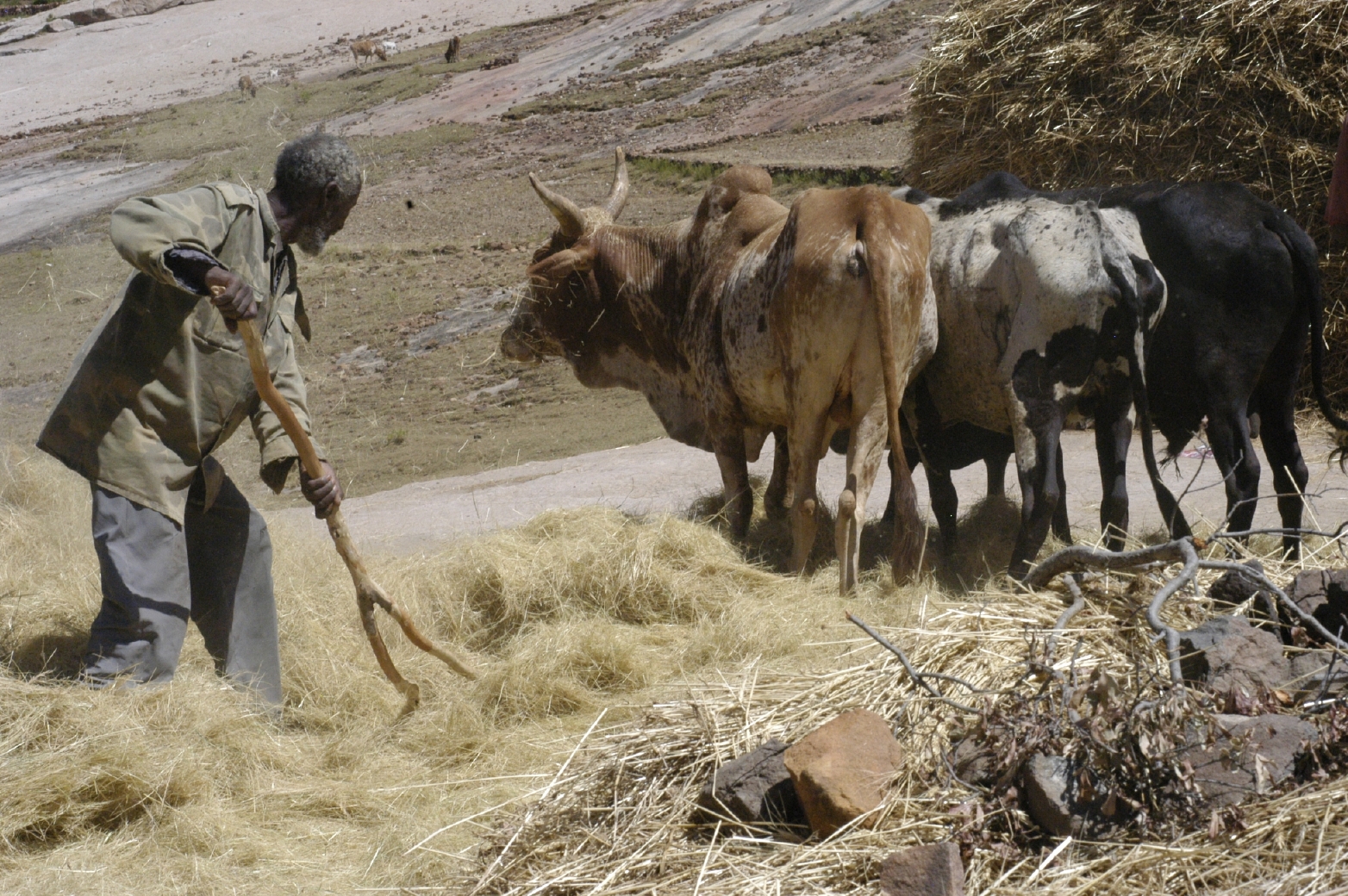 Threshing with oxen. 87 km east of Adwa, Tigray State, Ethiopia. 1 November 2006.