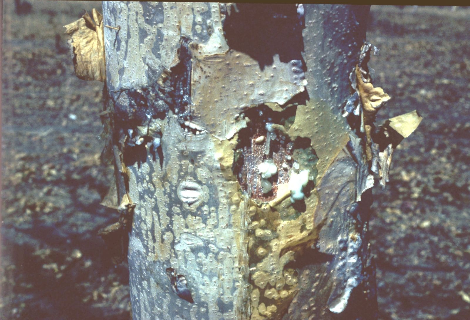 Boswelia papyrifera resin ready for harvest. Kadugli, Central Sudan. August 1983
