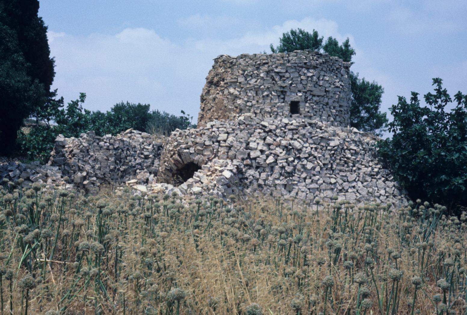 Onion field with watchtower near Ramallah, Palestine. 1987