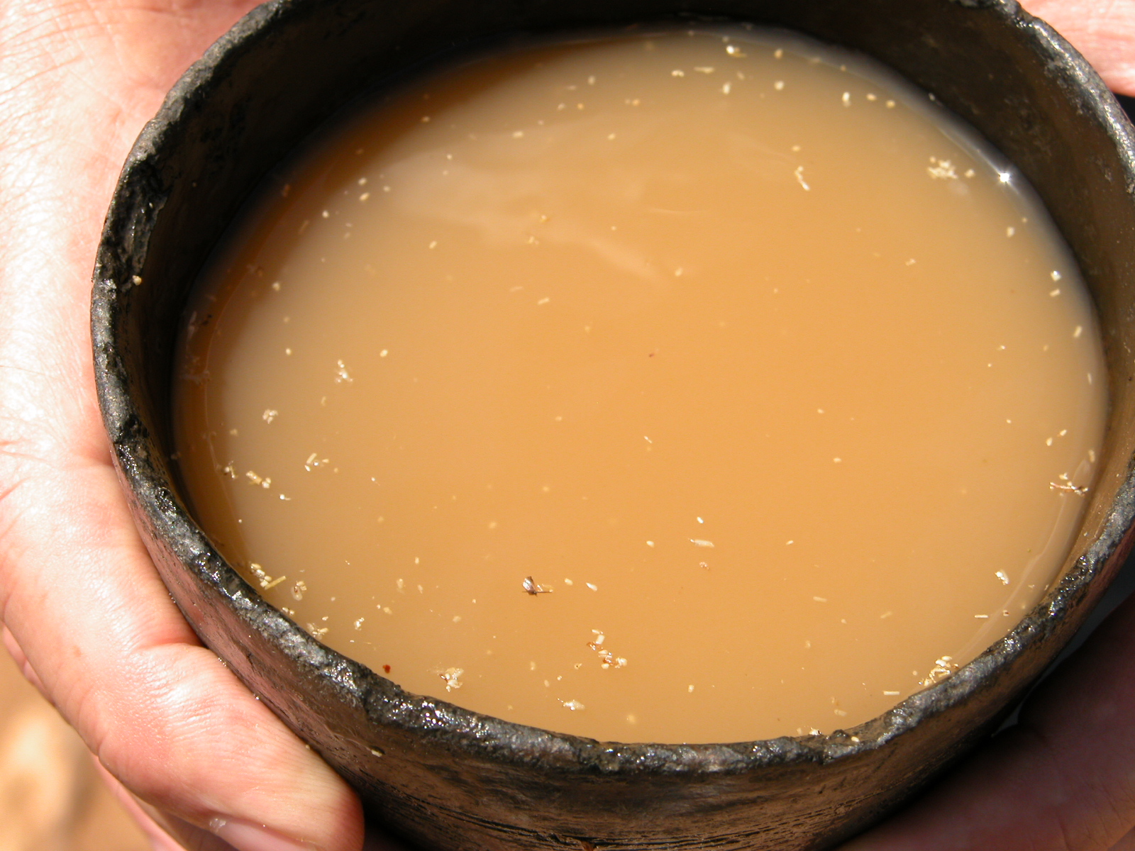 Comments: Sampling beer made from Hordeum vulgare and Rhamnus prinoides. Tigray State, Ethiopia. 2 November 2006.