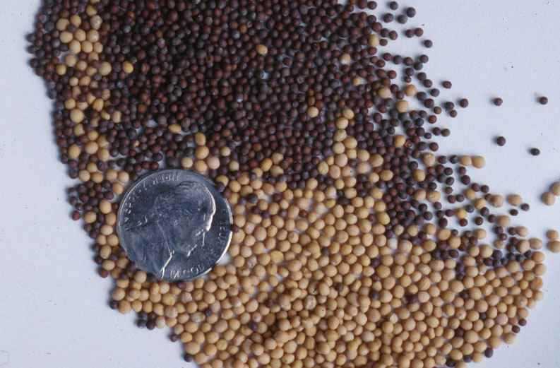 and Brassica nigra White mustard and black mustard seeds.