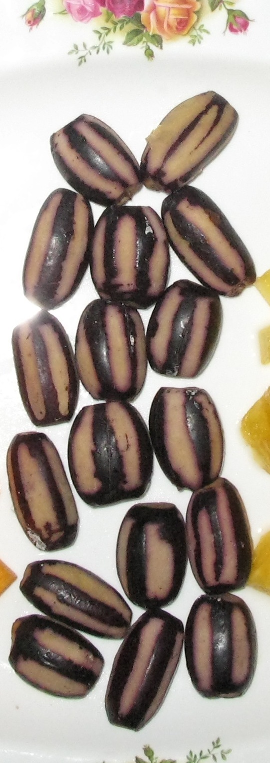 Fruits prepared by scoring then soaking in hot water.
