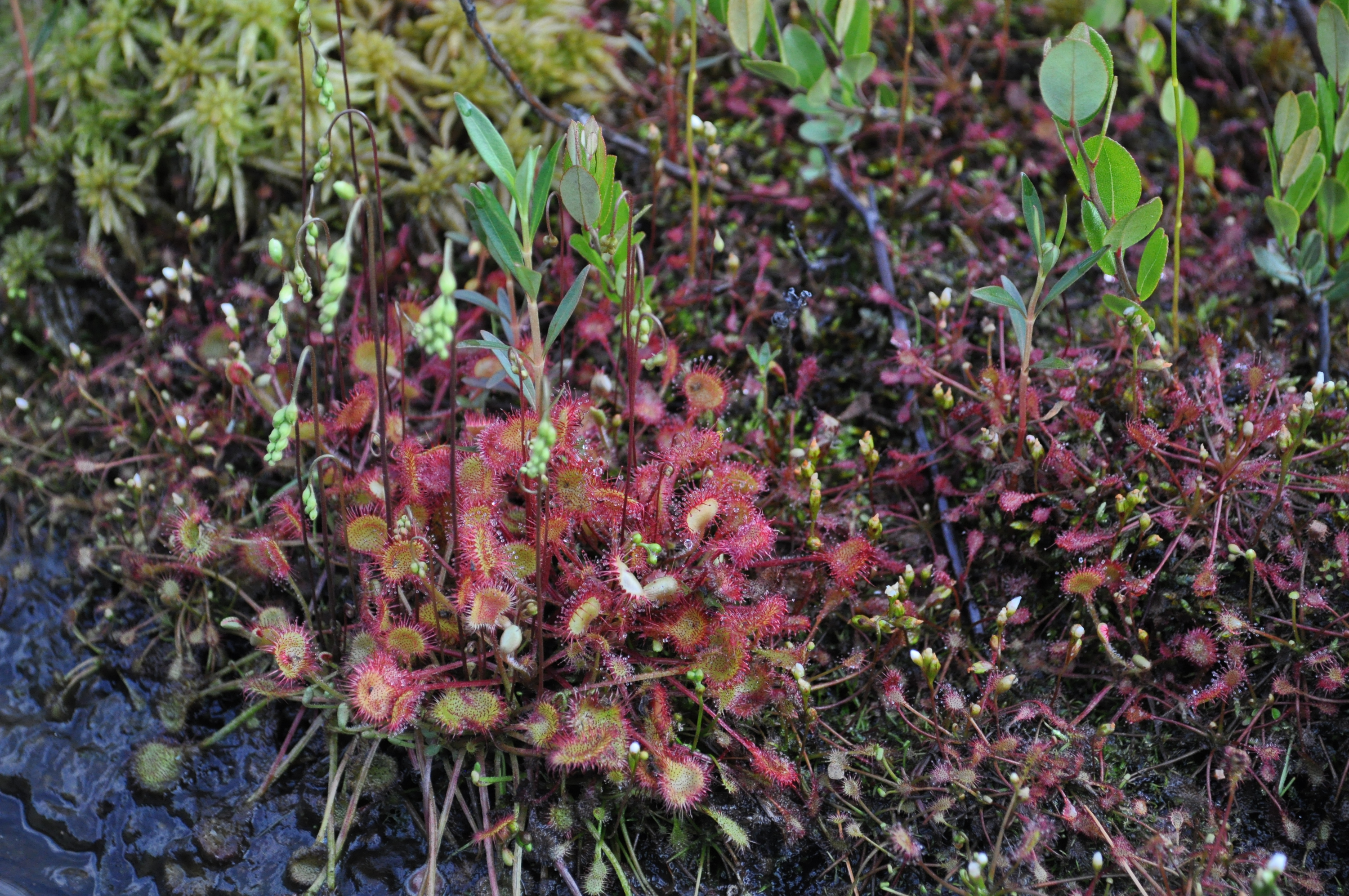 Comments: D. rotundifolia left; D. intermedia right. Helldiver Pond, Moose River Plains Wilderness, Hamilton Co., NY. 14 July 2014. Photo by P. Schafran.