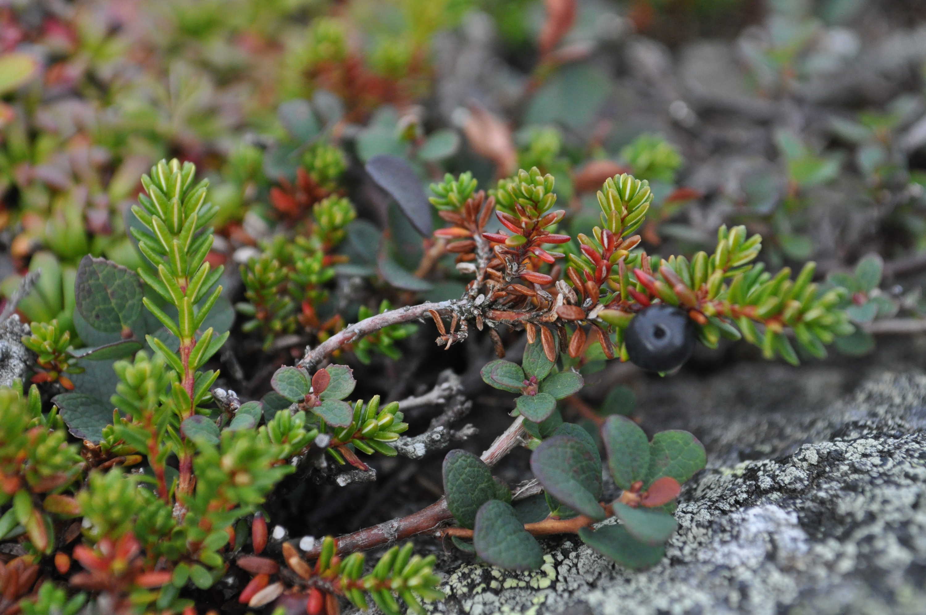 Comments: Creeping shrub on rocky summit of Wright Peak, Essex Co., NY (elev. 4550 ft). With Potentilla tridentata, Vaccinium uliginosum. 22 July 2014. Photo by P. Schafran.