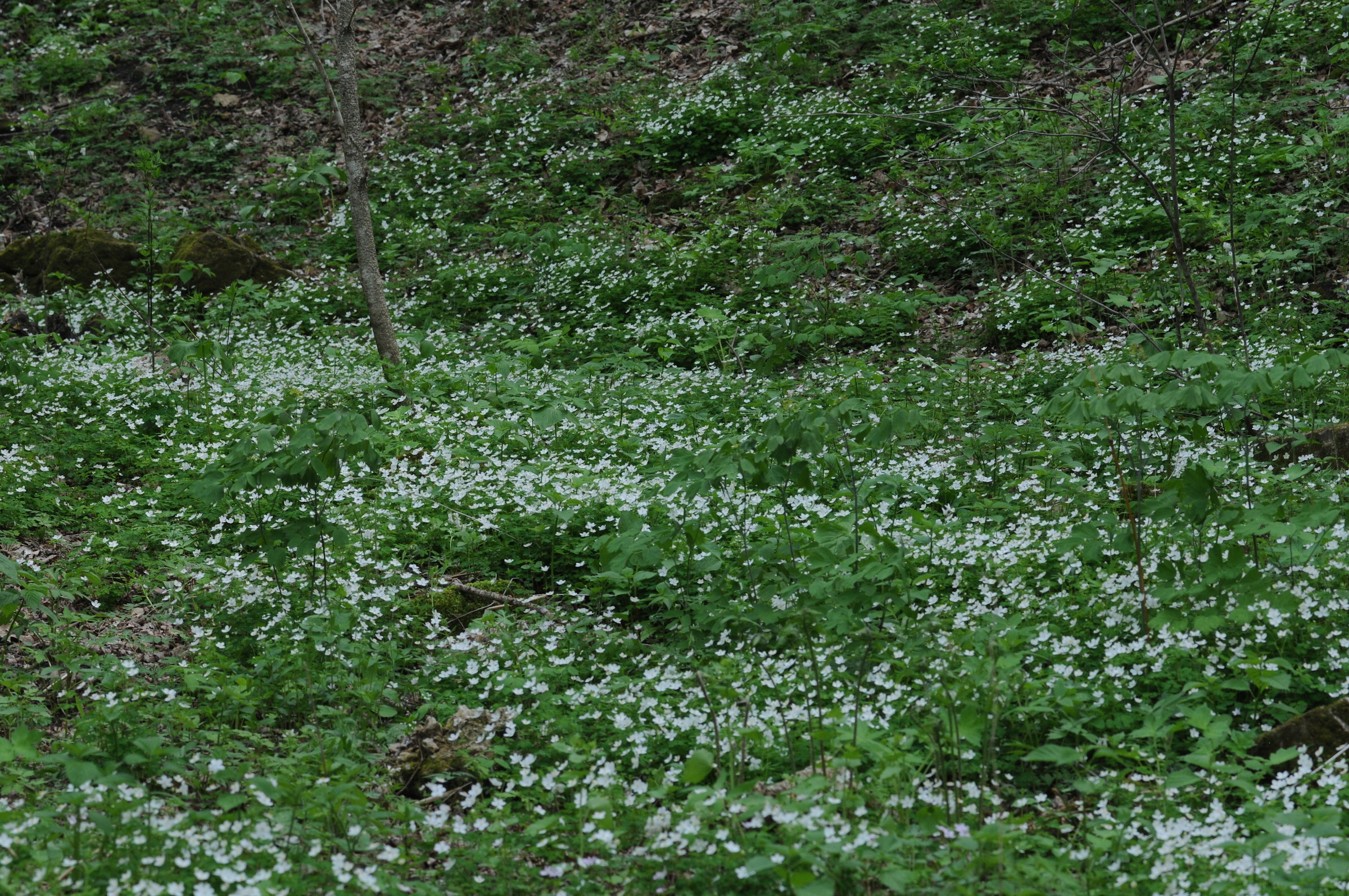 Comments: Steep slope south of County Highway C, just above Wisconsin River. Mesic forest on limestone bluff. Millville Township, Grant County, Wisconsin. 5 May 2015. 43° 0' 45.5" North, 91° 0 2" West (43.012648, -91.000562)