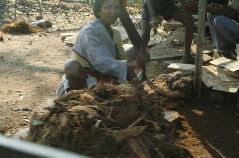 Andhra Pradesh, India. Preparing coir.