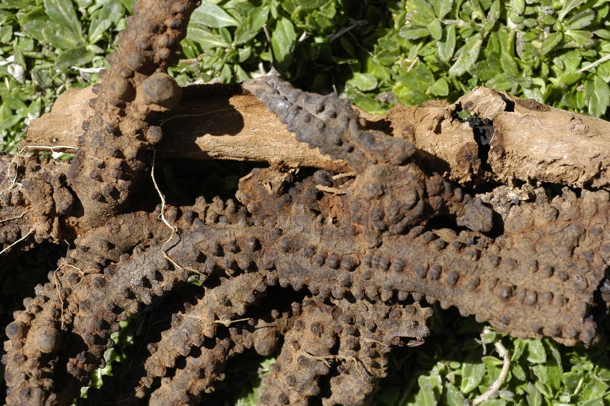 Comments: dark) parasitizing Euphorbia mauritanica (lighter roots). Kanikwa south, 2.2 k on Kleinsee road, 14 km east of McDougalls Bay turnoff. 14 September 2003.
