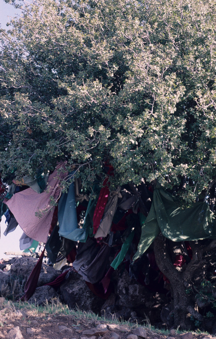 Hung with cloths to honor holy person. Jebel al Arab, Syria. May 2001