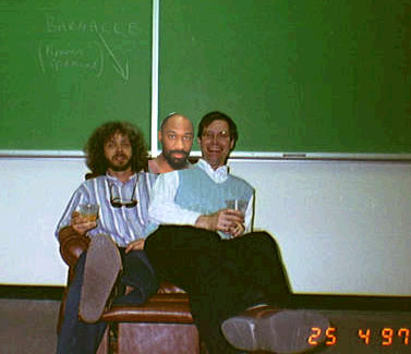 This picture was taken during the celebration for 3 members of the Nuclear Physics group who received tenure in 1997: Drs. Charles Hyde-Wright, Sebastian Kuhn and Winston Roberts.