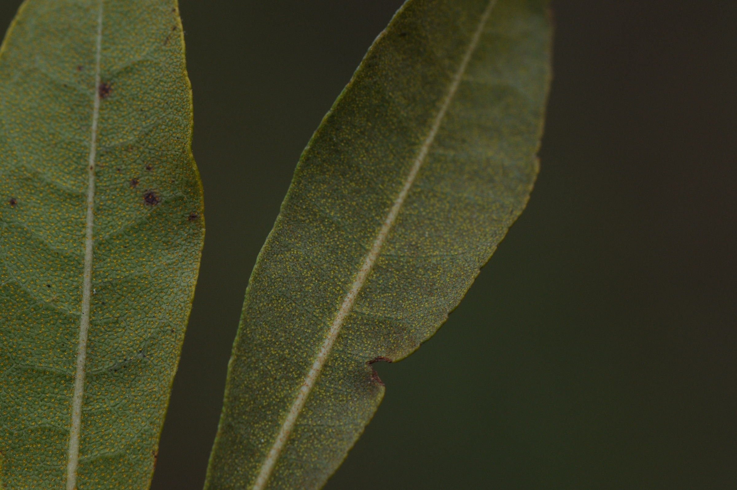 Comments: Blackwater Preserve 25 March 2013. The leaf of Morella pusilla is on the left, M cerifera on the right.