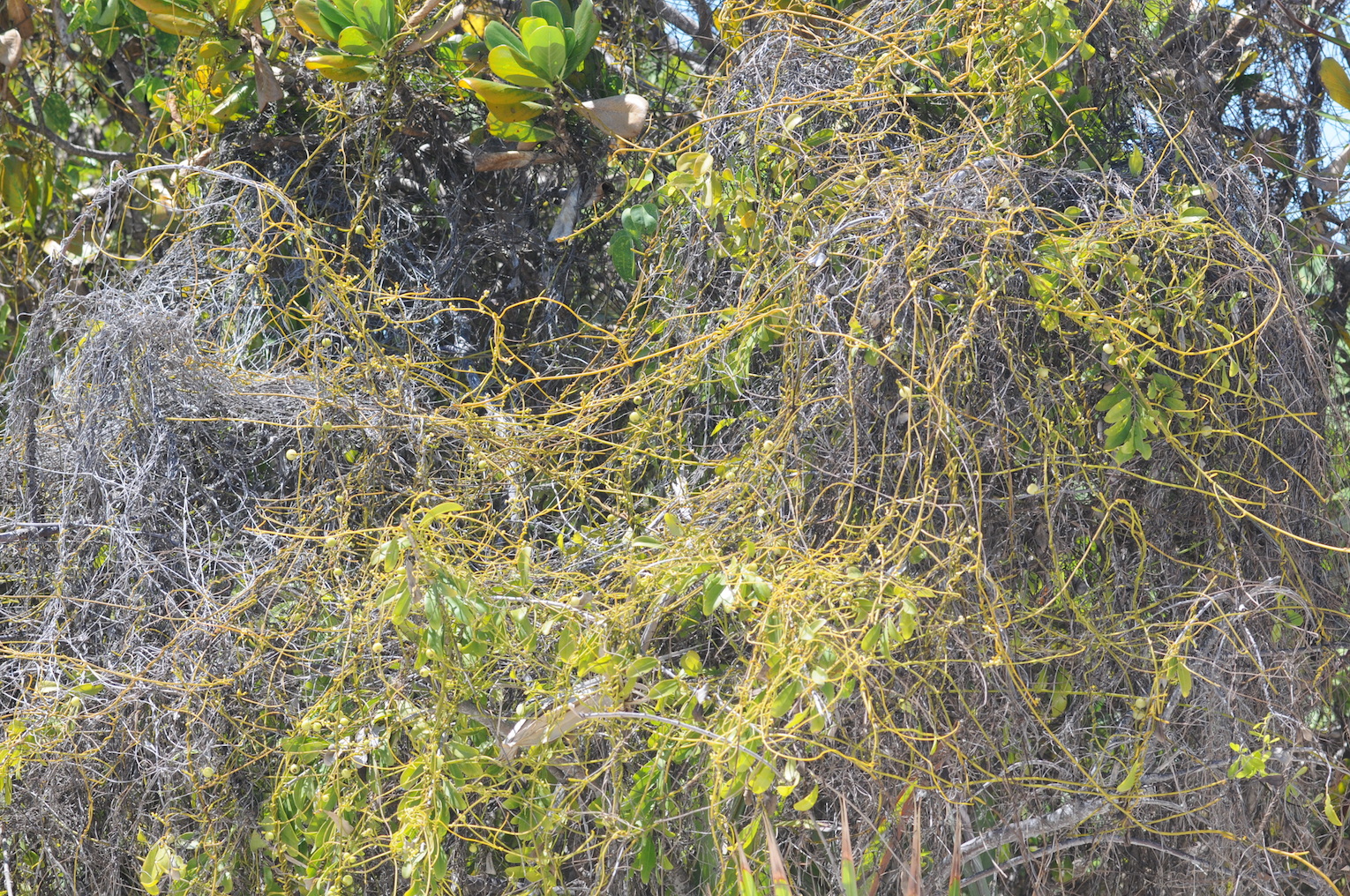 Comments: Half Moon Cay, Bahamas. 20 March 2015. Parasitizing strand vegetation. 24° 34' 34.1" North, 75° 57' 6.7" West