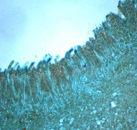 Morel. Detail of asci which line the folds and depressions of the ascocarp
